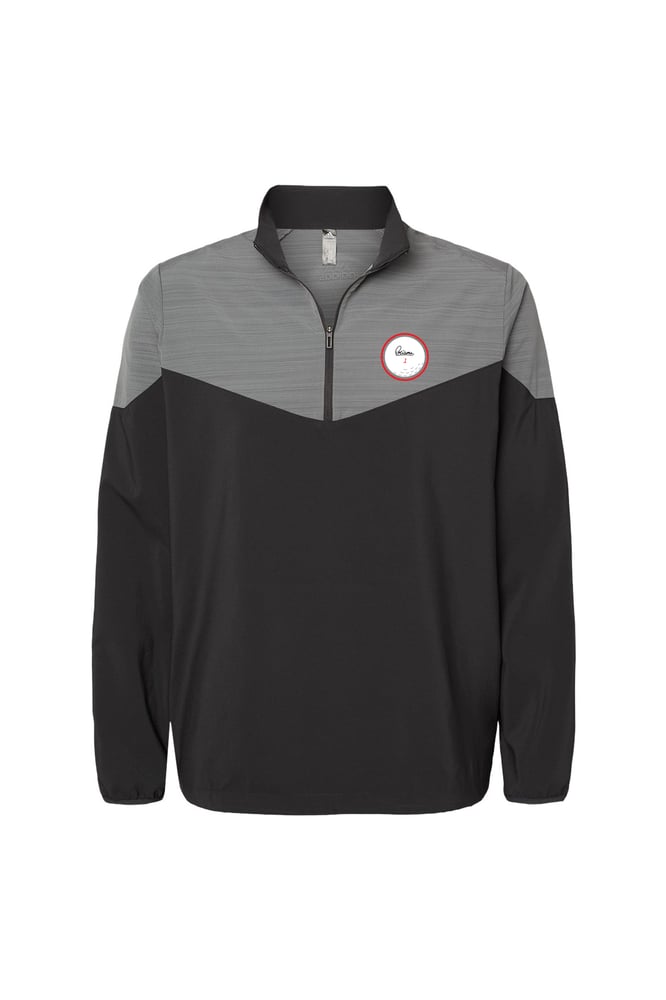 There is a golf ball. There is a red circle around the golf ball. It's on a jacket. The jacket will keep you dry. The Jacket will stop the wind. The jacket will NOT stop you from missing your birdie putt 17 feet passed the hole.